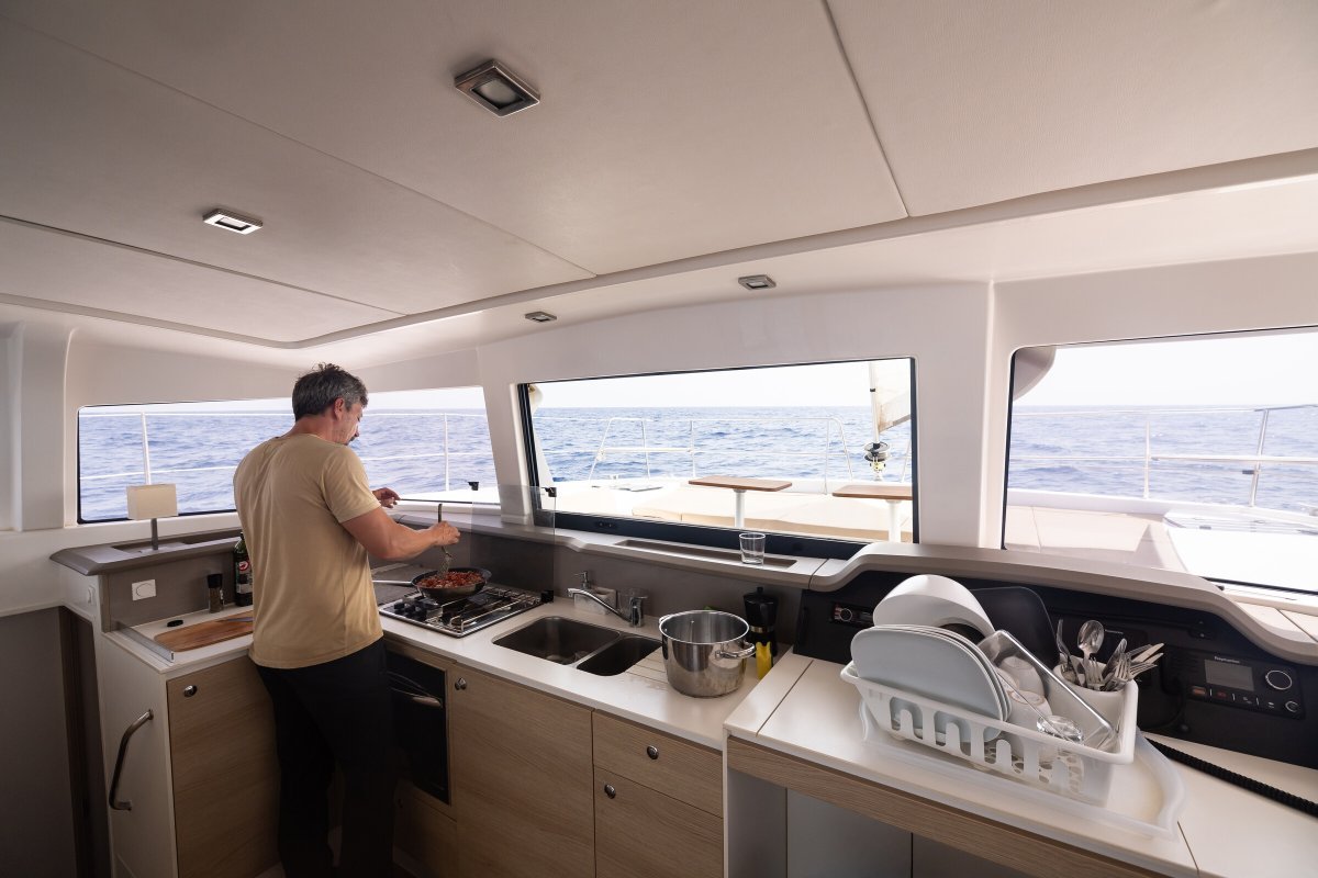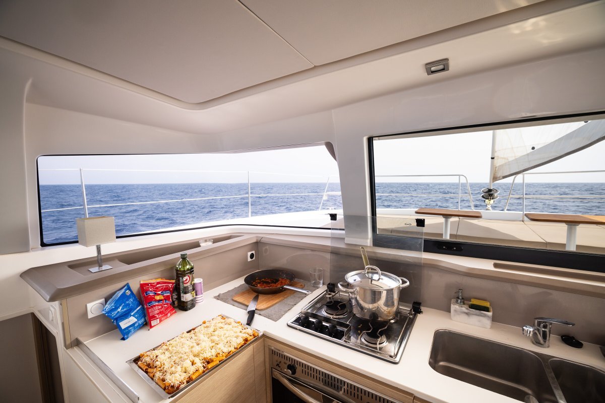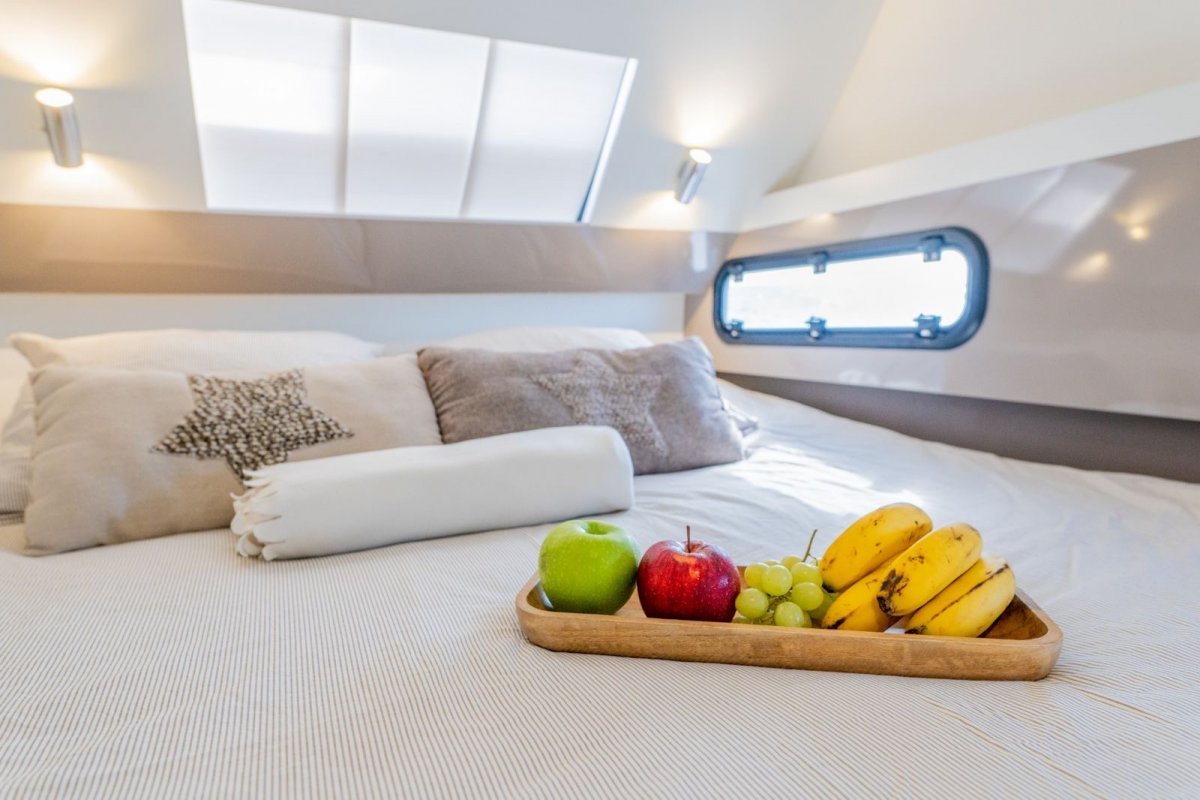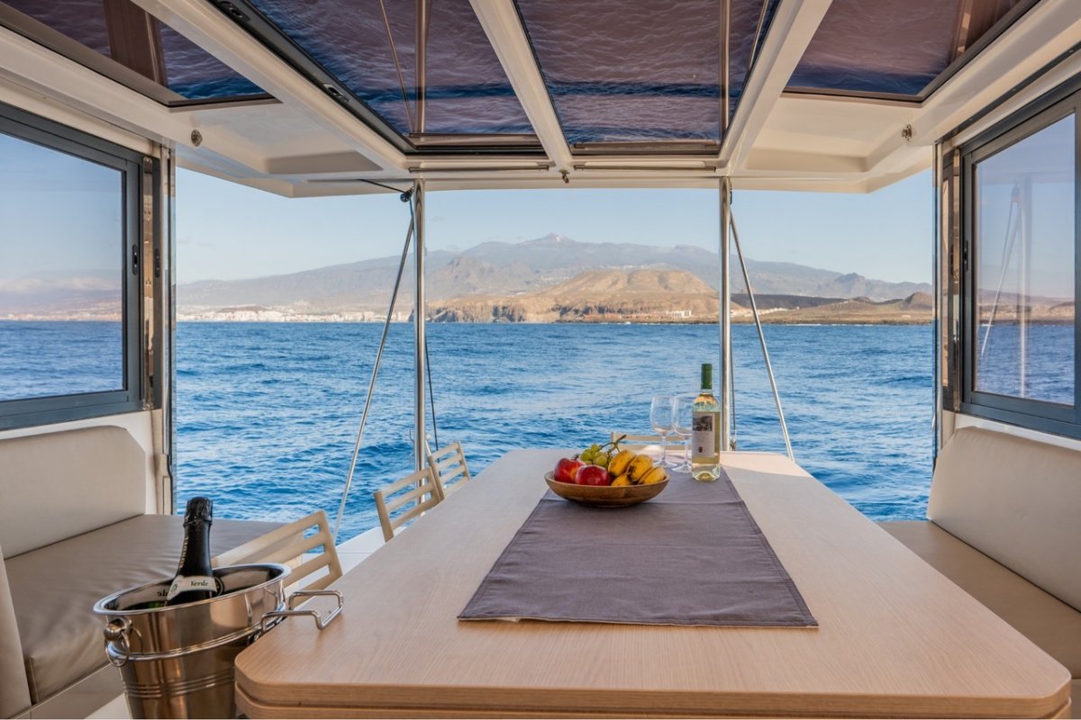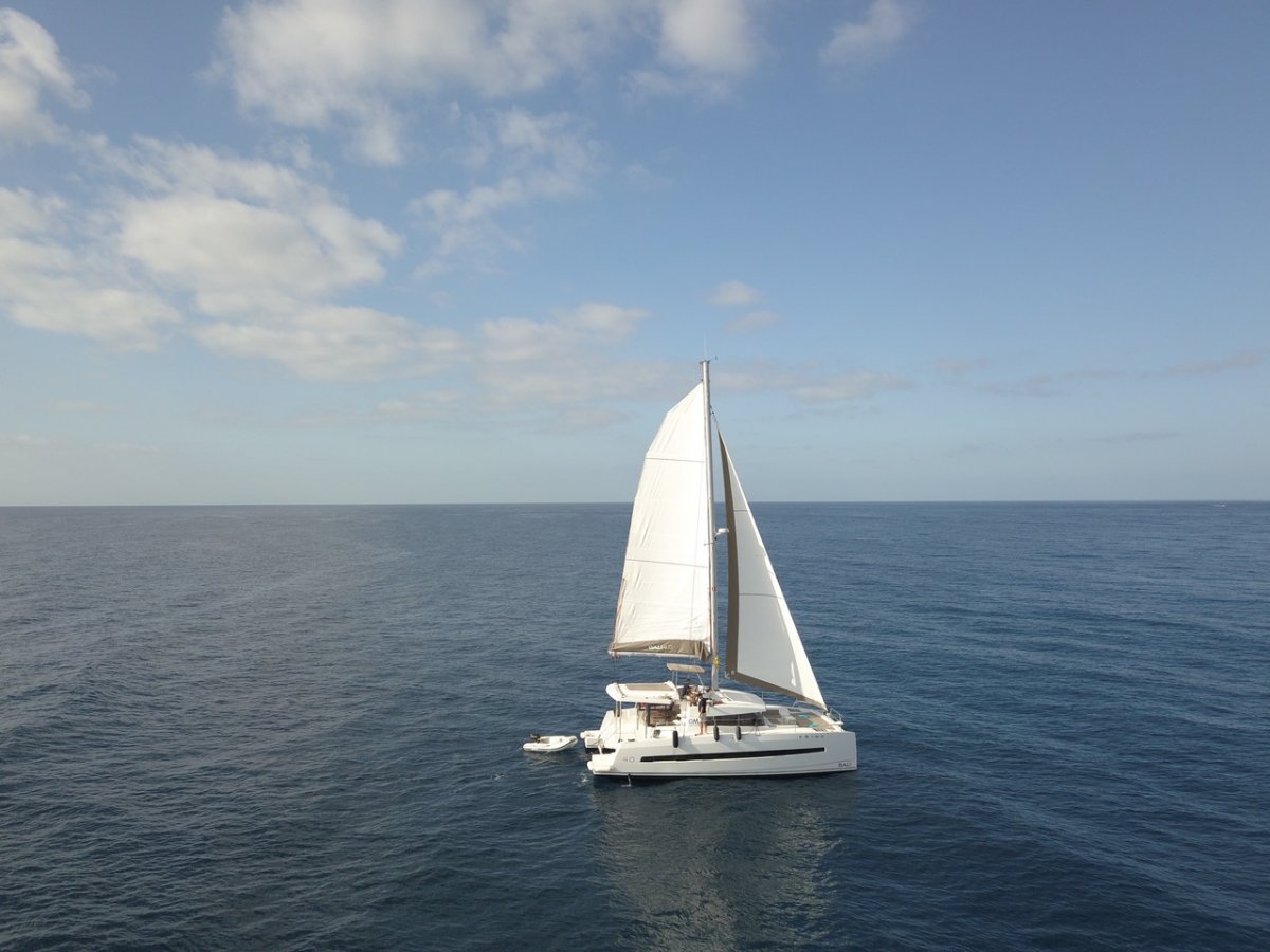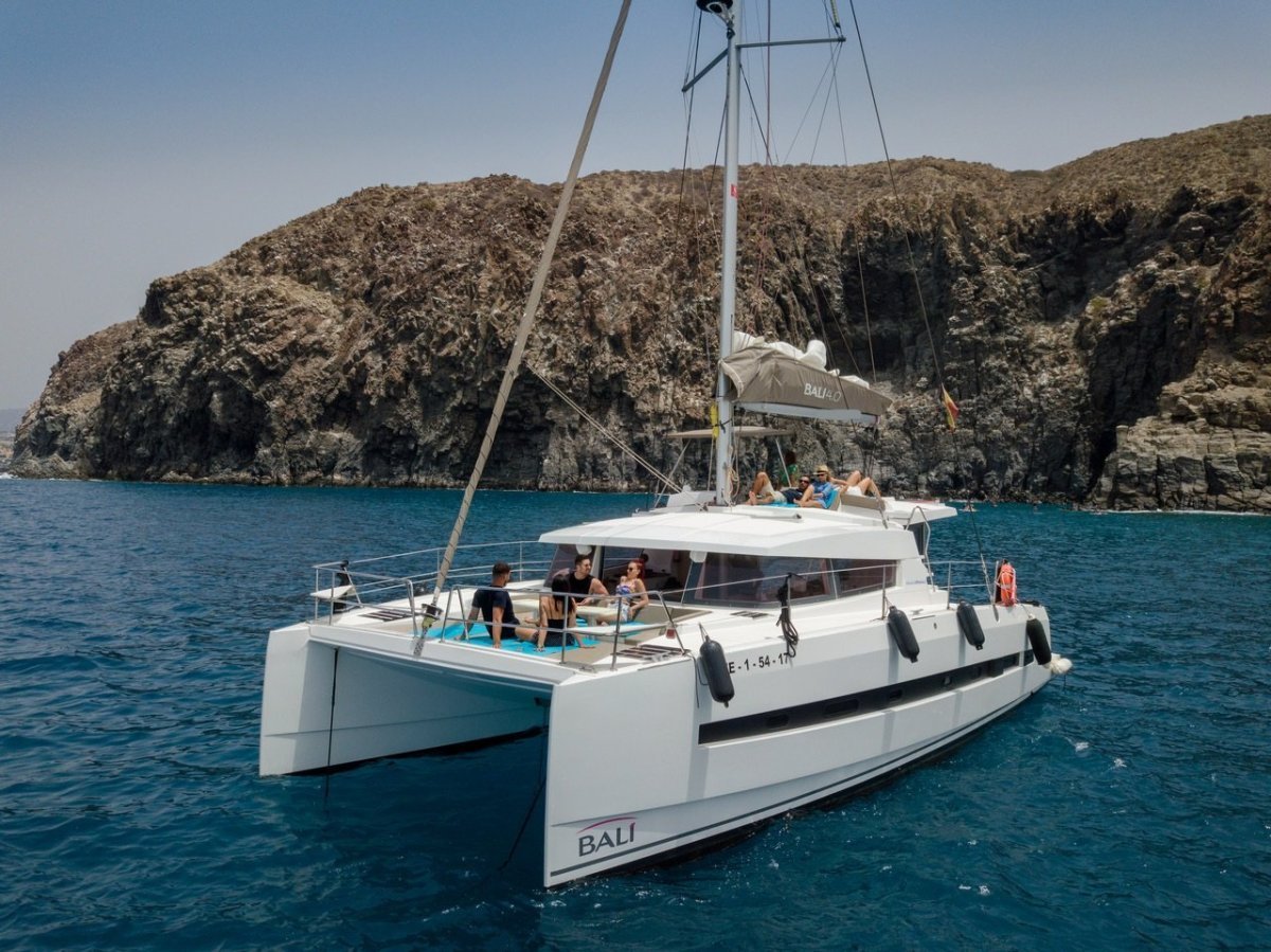 El catamarán en el que realizaremos la travesía es un Bali 4.0. Este barco tiene 12 metros de eslora y 6,5 metros de manga. Cuenta con 4 camarotes dobles con baño privado , cocina completa y amplio salón con comedor para 10 personas.