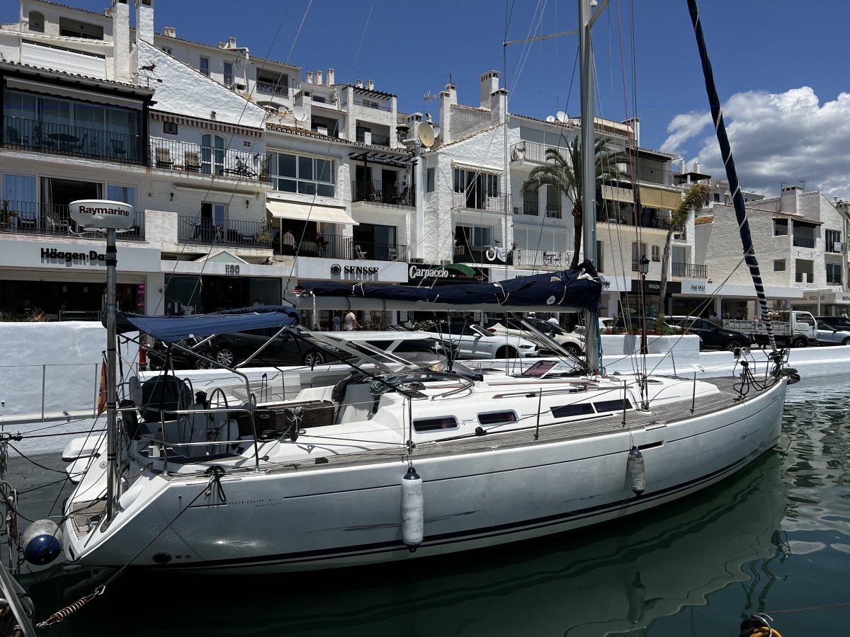 El velero en el que realizaremos la travesía es un Dufour 455 Grand Large. Este barco tiene 14 metros de eslora y 4,35 metros de manga. Cuenta con 4 camarotes dobles y 3 baños (WC eléctricos), cocina completa y amplio salón con comedor para 10 personas.