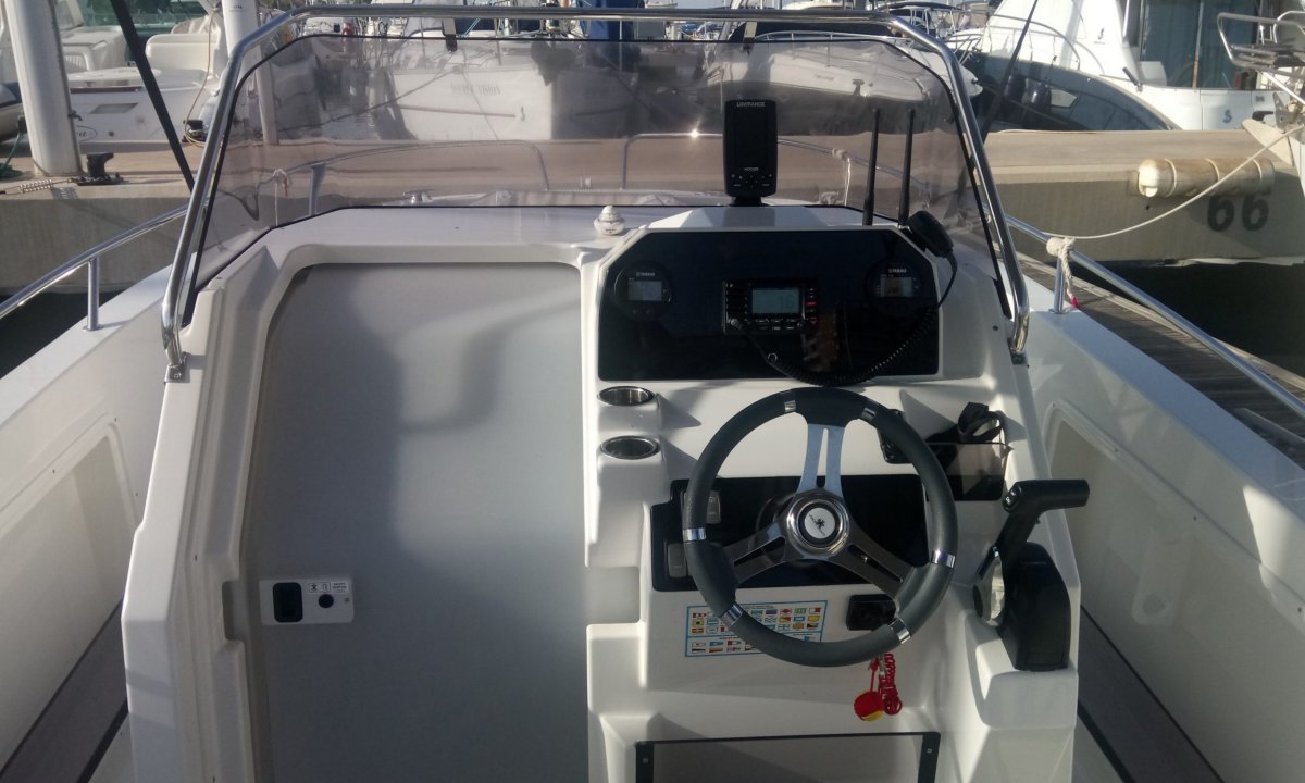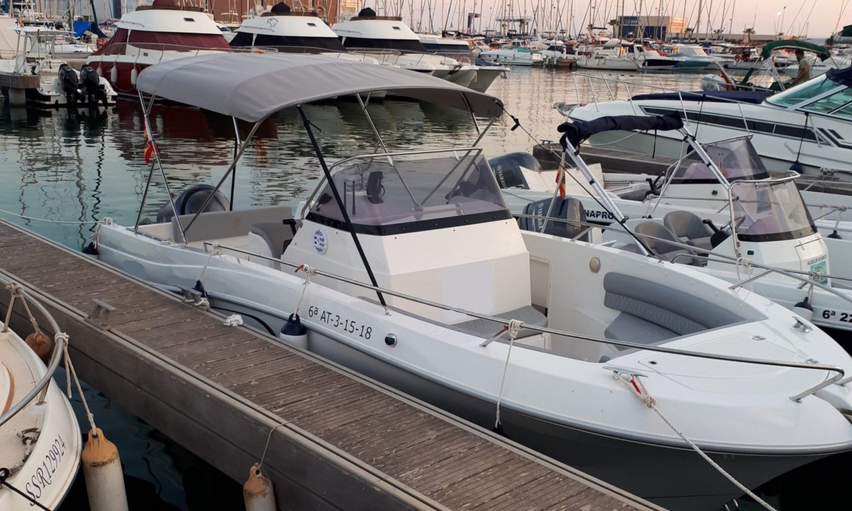 Embarcación PACIFIC CRAFT 770 Open equipada con motor motor Yamaha 225cv. Barco nuevo del 2018. Un toldo de grandes dimensiones regulable, mesa desmontable, asientos laterales abatibles en popa, doble plataforma de baño con escalera, amplia cabina, radio VHF, sonda, GPS y equipo de música con Bluetooth y conexión USB. Con capacidad para 12 personas, la máxima capacidad para grupos grandes.