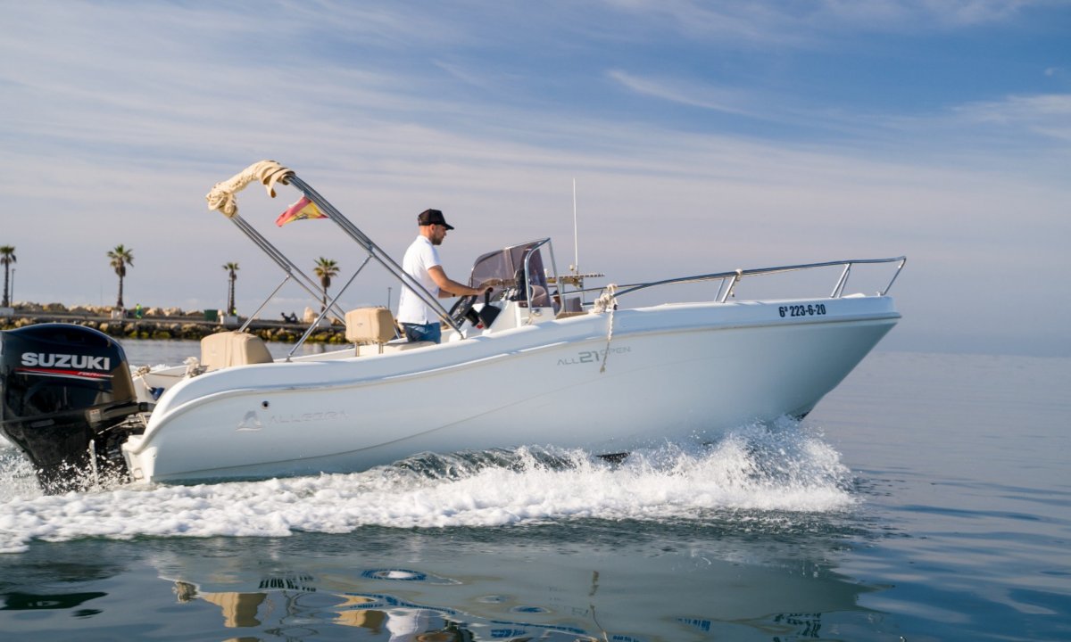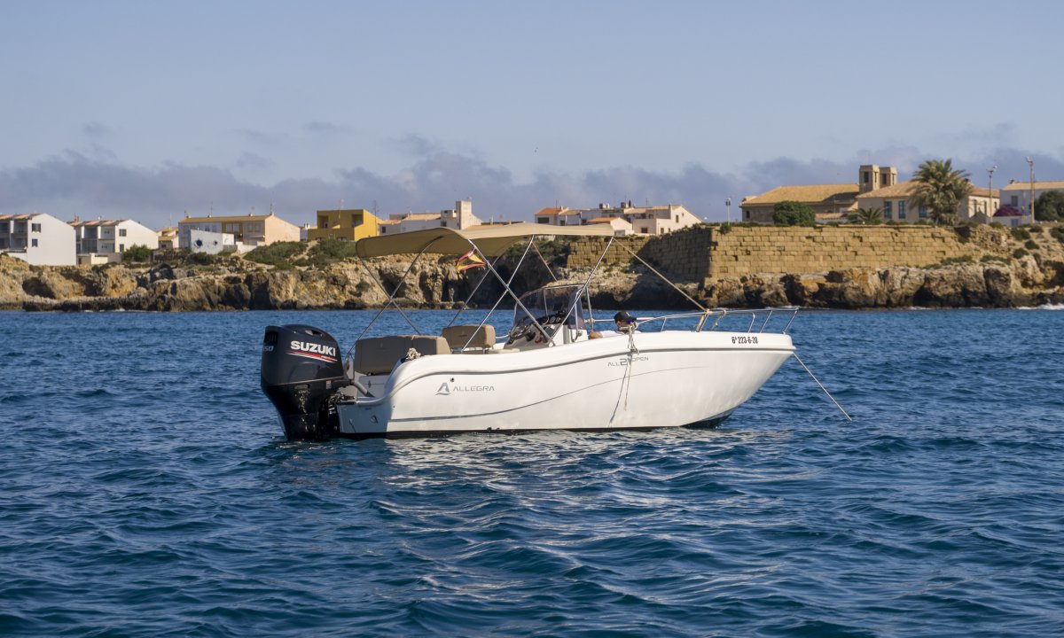 La embarcación es una Allegra 21 Open equipada con motor SUZUKI de 150 cv. 4 tiempos. Se trata de un barco nuevo del 2020. Cuenta con un toldo de grandes dimensiones regulable, doble plataforma de baño con escalera, radio VHF, sonda y equipo de música con Bluetooth y conexión USB. Completamente equipada para proporcionar una gran comodidad.