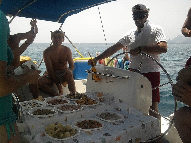 Una vez en cabo de Cope buscaremos una cala en la que fondear para disfrutar de un baño en las aguas cristalinas y practicar snorkeling o descansar tomando el sol.