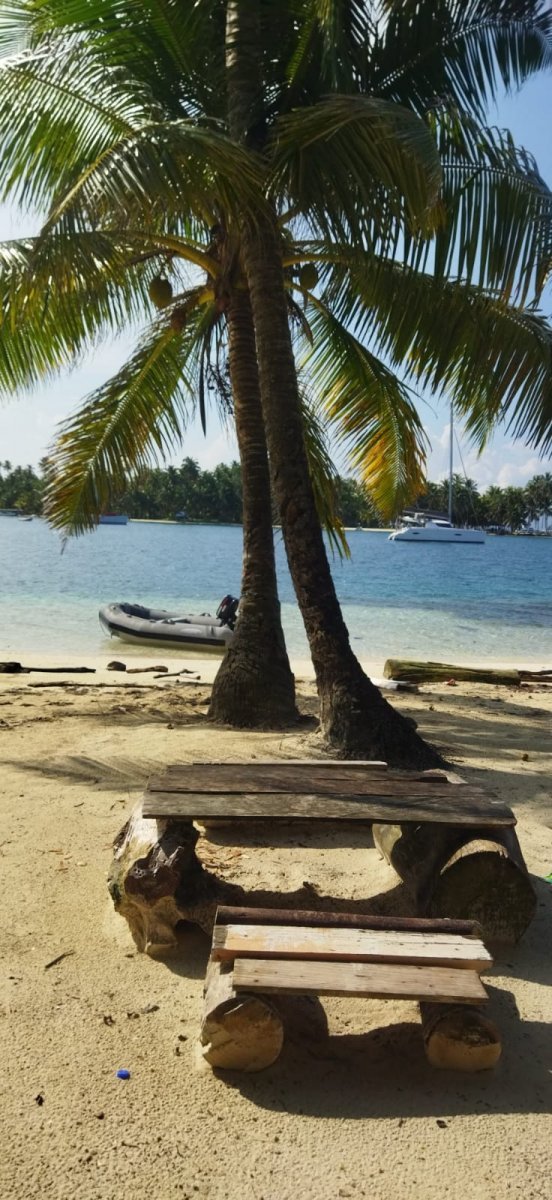 Vivimos en el velero desde hace 15 años , Los indios Dulé, son los dueños de ésta Región Autóctona de Panamá, y no permiten desarrollo turístico, por lo que es un sitio que se conserva virgen. Los cocos son su moneda de pago tradicional y las molas su artesanía.