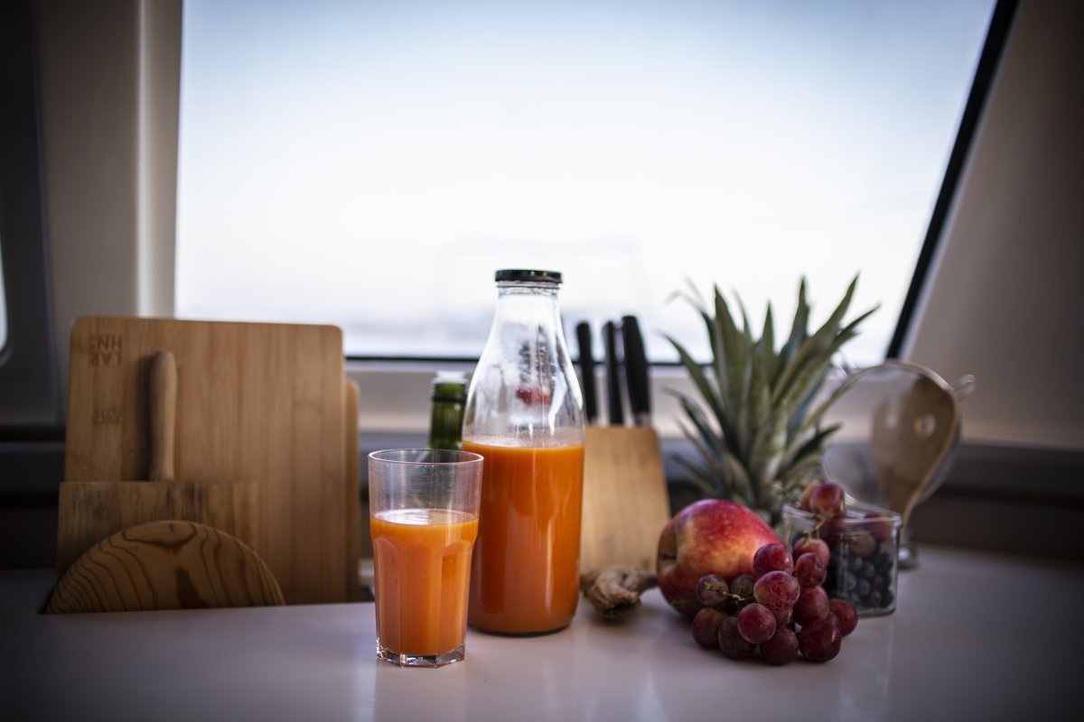 Ofrecemos servicio de capitán y azafata, realizando el servicio de cocina a bordo. Ofrecemos desayuno buffet combinando frutas, yogures y embutidos mediterráneos, comidas y cenas cuidadosamente seleccionadas con productos frescos, mediterráneos y una selección de carne y pescado local. Combinaremos con comidas o cenas en tierra en función de la ruta.