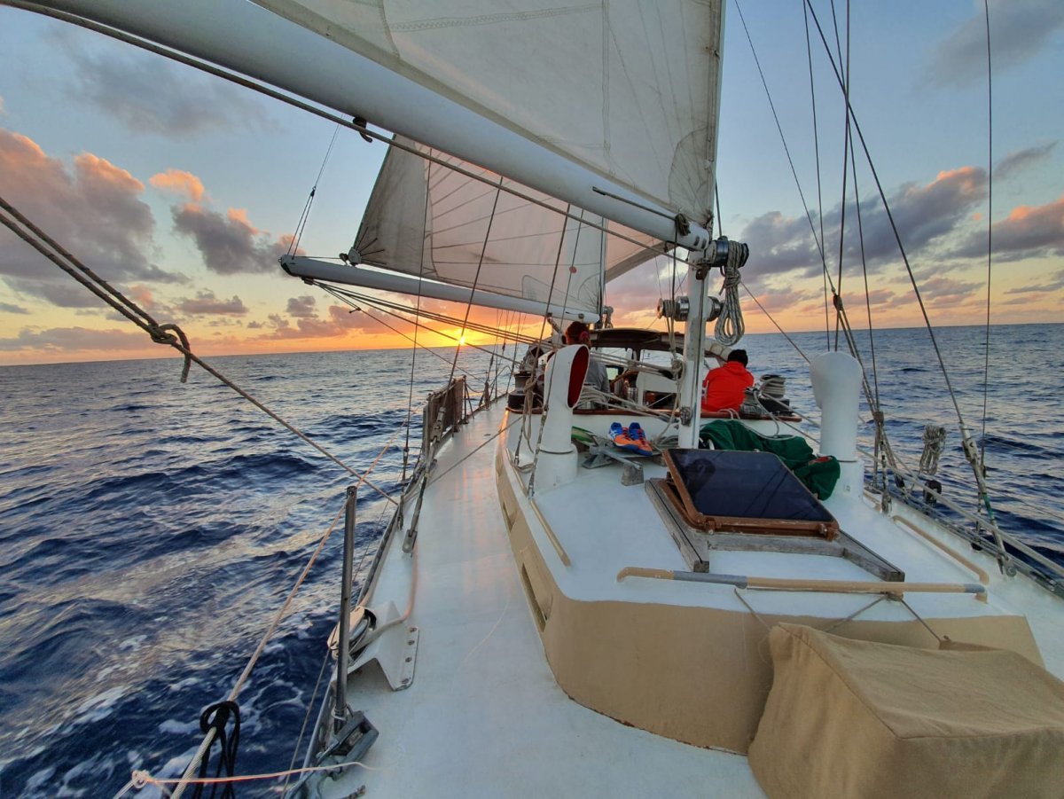 Luego de pasar unos dias en Bermudas, ponemos rumbo este. Serán entre 12 y 15 dias de navegación. Haremos una escala en Faial, Horta, una parada larga para descanso y provisiones y esperar la previsión meteorológica favorable.