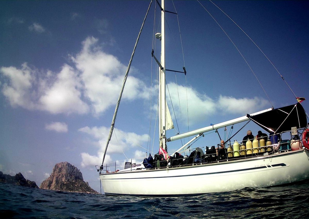Un velero preparado para poder realizar inmersiones: compresor, equipos de buceo, embarcación auxiliar, etc...