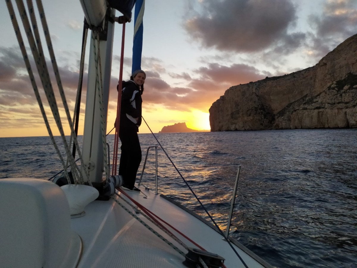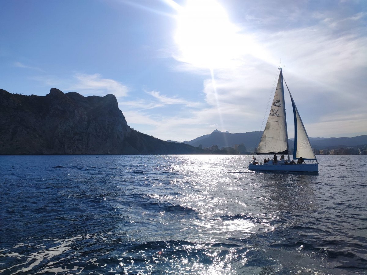 Iniciamos la actividad con una breve explicación sobre la navegación a vela. Los pasajeros pueden vivir la experiencia de seguir las órdenes del patrón para coger las mejores rachas de viento, mientras navegamos a vela por la costa más bonita de Costa Blanca.