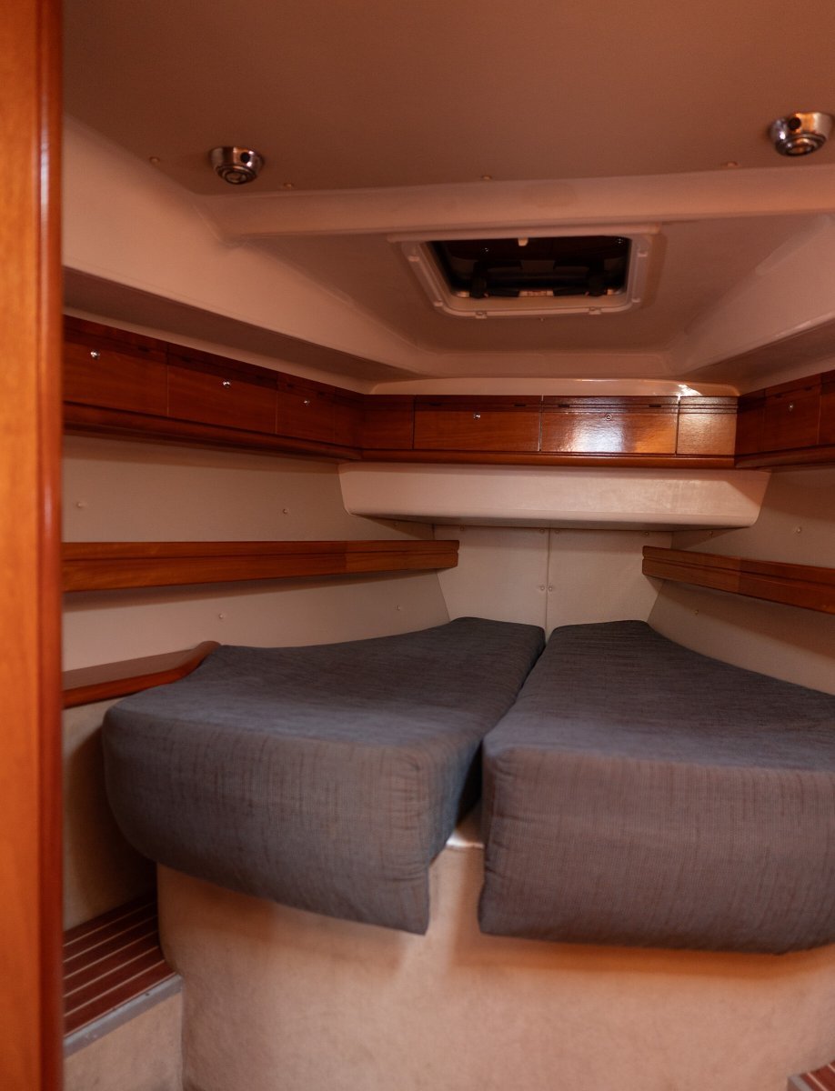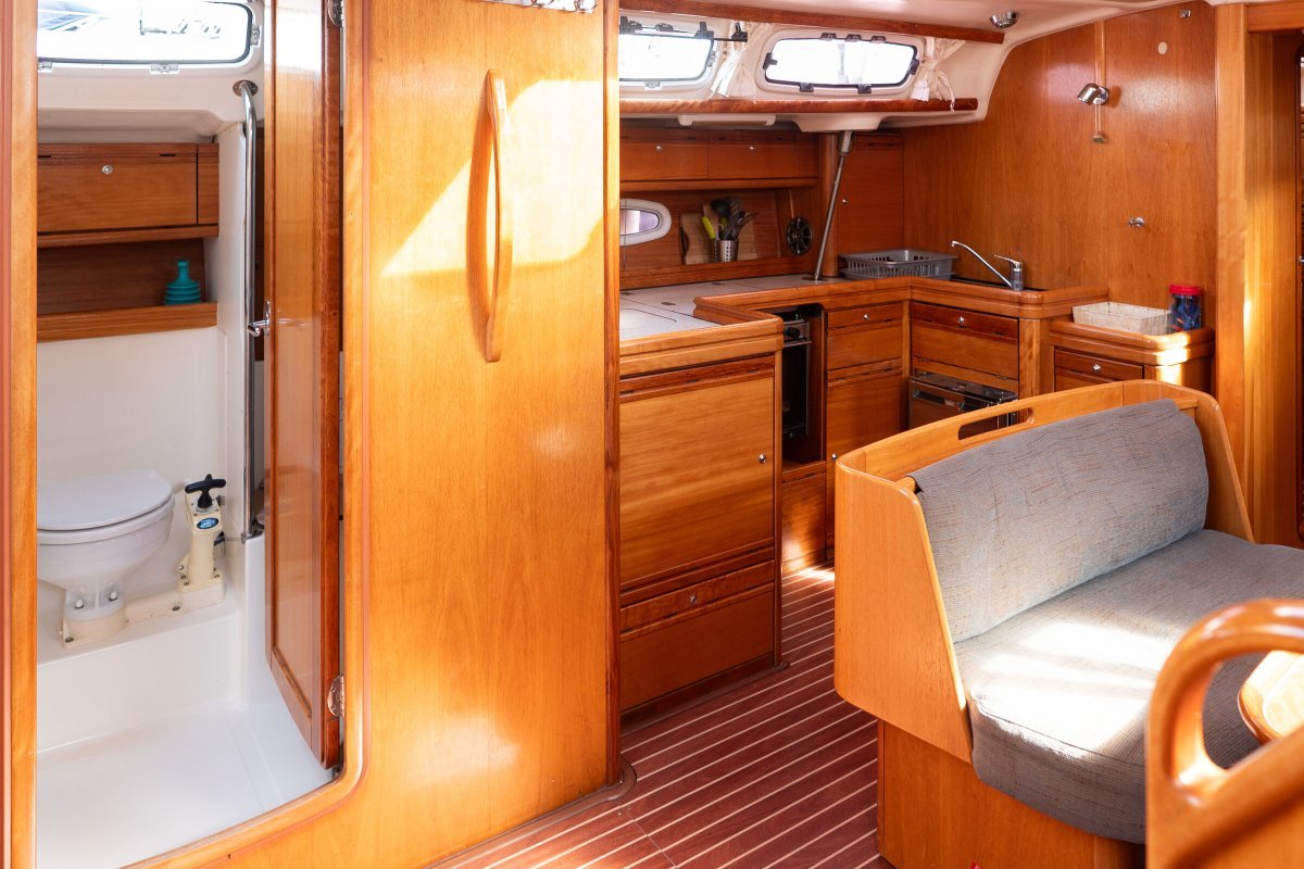 El Alojamiento: Tu "Suite" Flotante. Nuestro velero no es solo un barco; es un hogar en el mar. Con 14 metros de longitud, ofrece una amplitud y estabilidad que sorprende a quienes nunca han subido a bordo: