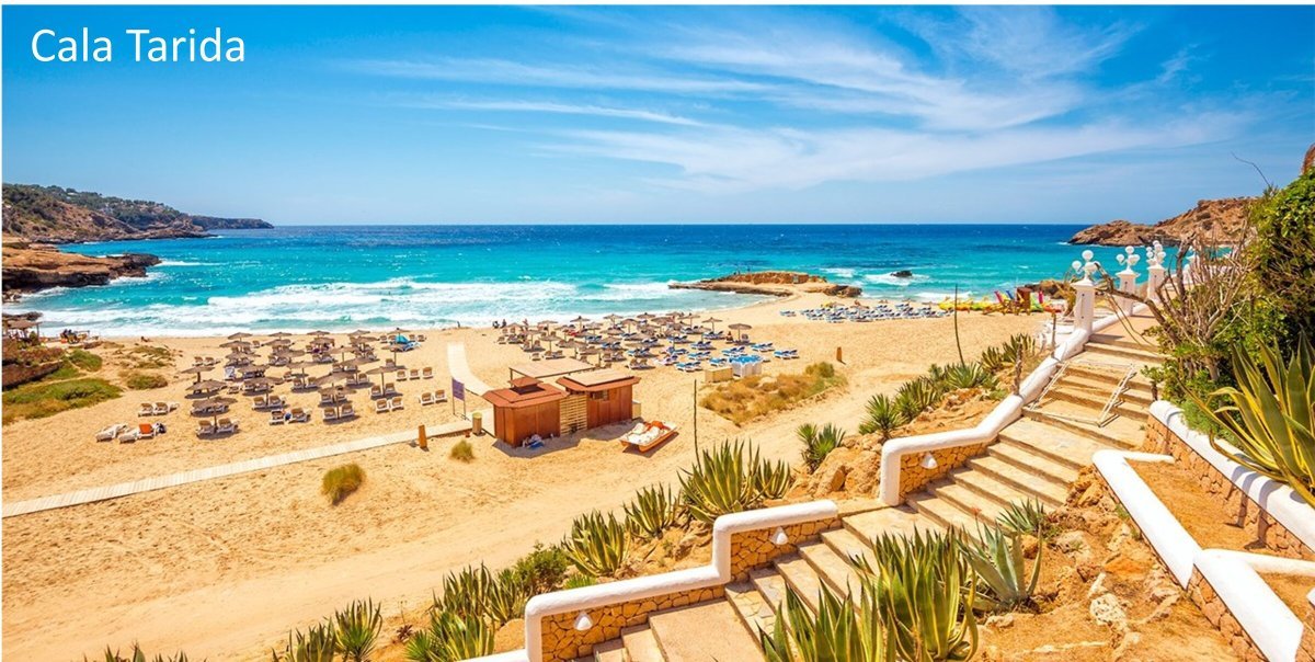 Zarparemos rumbo a la Cala Tarida donde nos bañaremos y podremos bajar con el Dingui a hacer compras. Comeremos y por la tarde iremos a la Cala D’Hort donde recalaremos y dormiremos, eso sí, después de haber hecho sonar las guitarras.