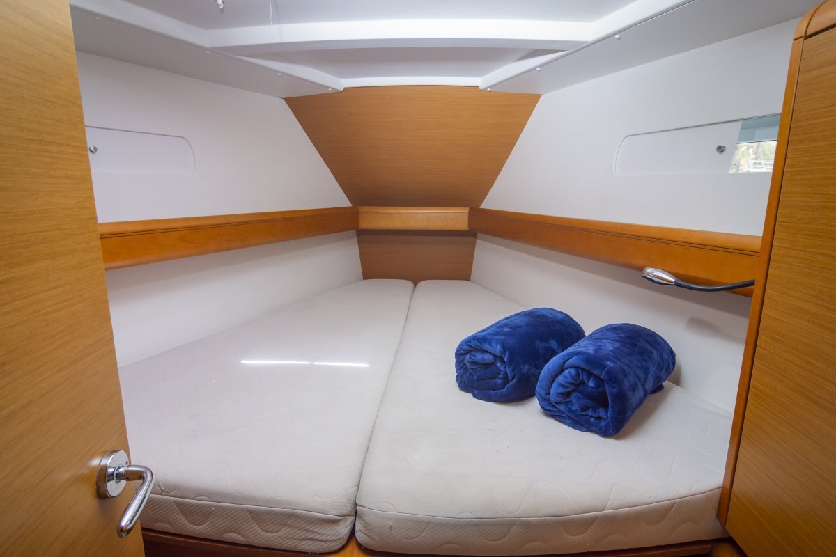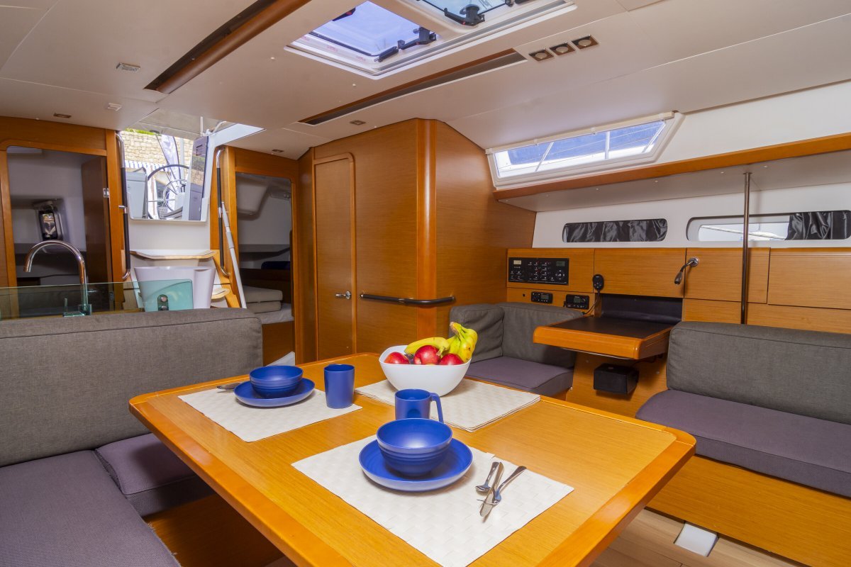 Sun Odyssey 449 encarna la elegancia, la comodidad y el rendimiento que puede esperar de la reconocida línea Sun Odyssey. Con su diseño moderno y cautivador, ha sido estudiado en cada detalle para ofrecer una navegación agradable, segura y con simplicidad de maniobra que le permitirá pasar unas maravillosas vacaciones en el mar. Los interiores son espaciosos, luminosos y se caracterizan por una cuidadosa atención al detalle, ofreciendo cómodos camarotes y una cocina totalmente equipada.