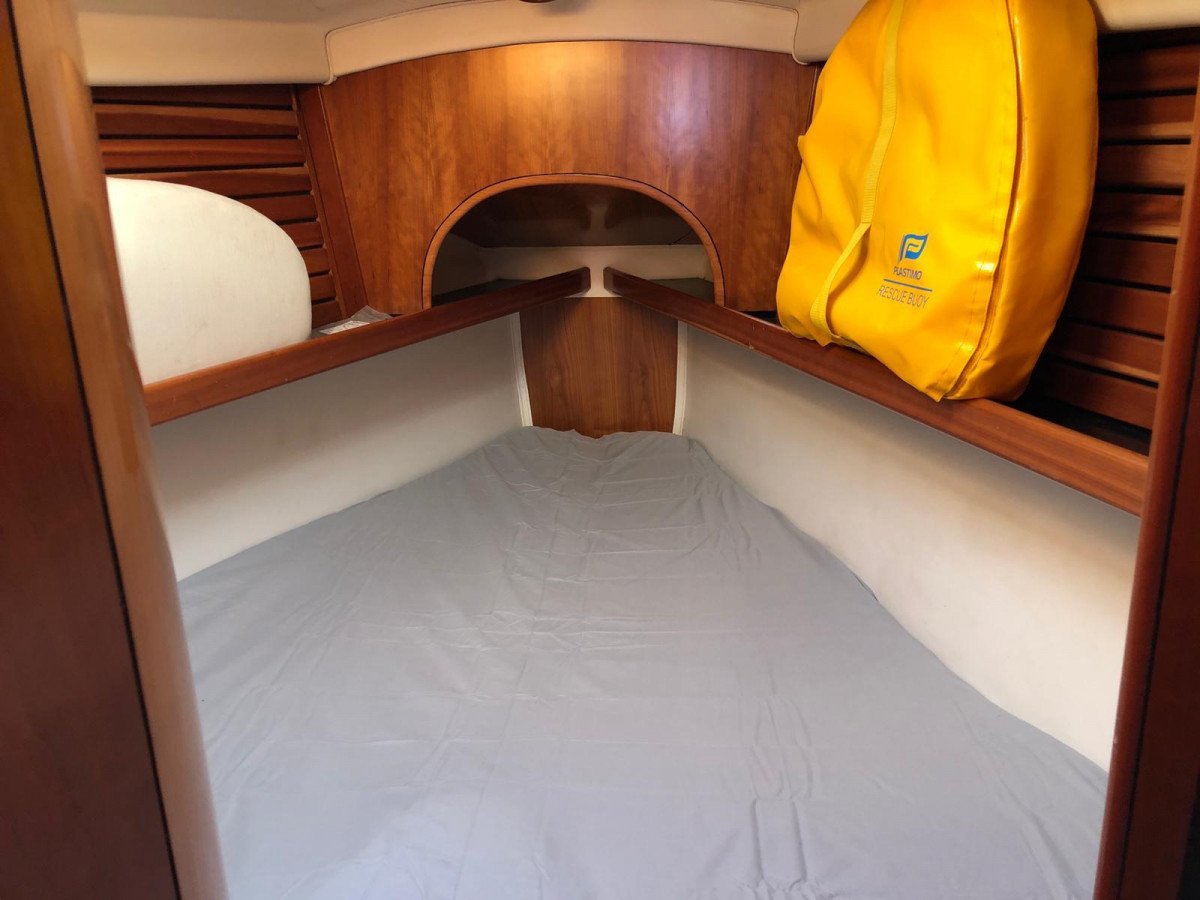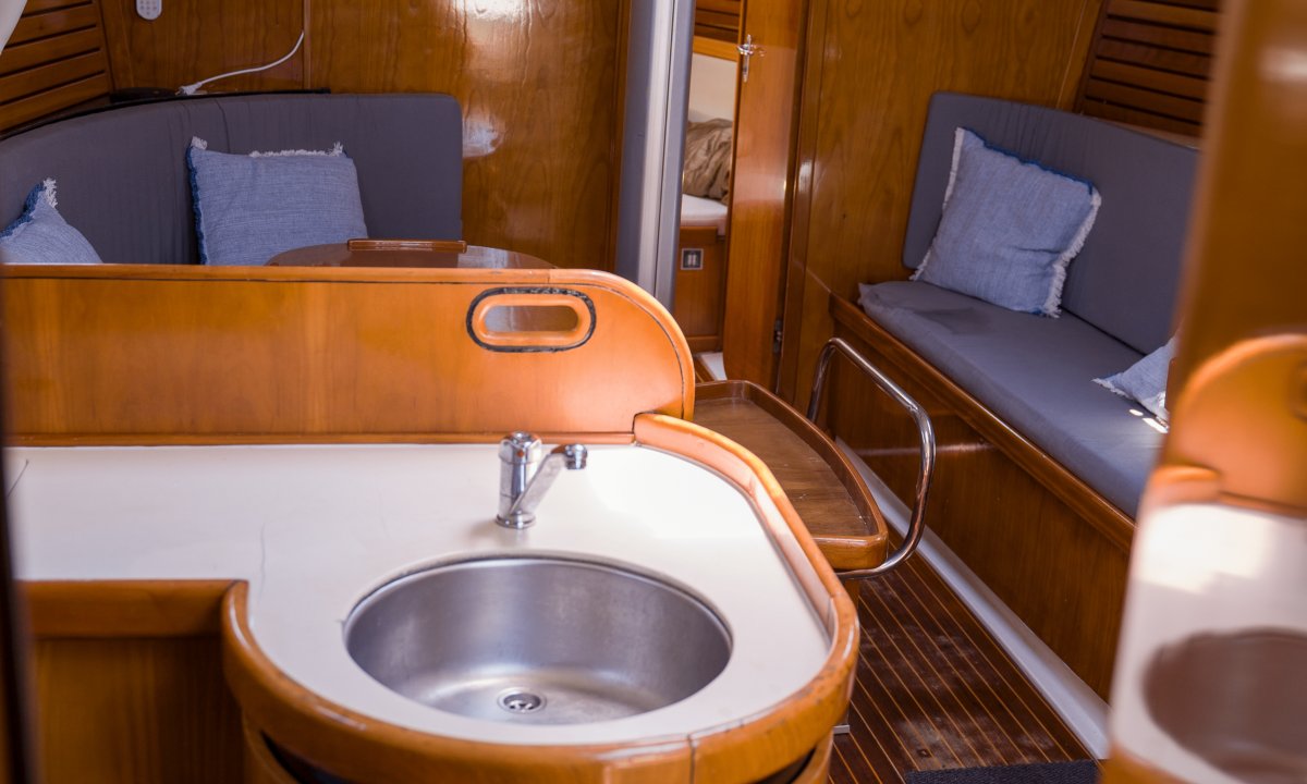 Este velero Ro 400 es de 12 metros de eslora y es ideal para salir a navegar con la familia o los amigos. Es perfecto para aquellos que buscan una maniobra fácil a la vez que segura. Con una capacidad de hasta 12 personas ya que cuenta con un total de 3 camarotes y un salón convertible.
