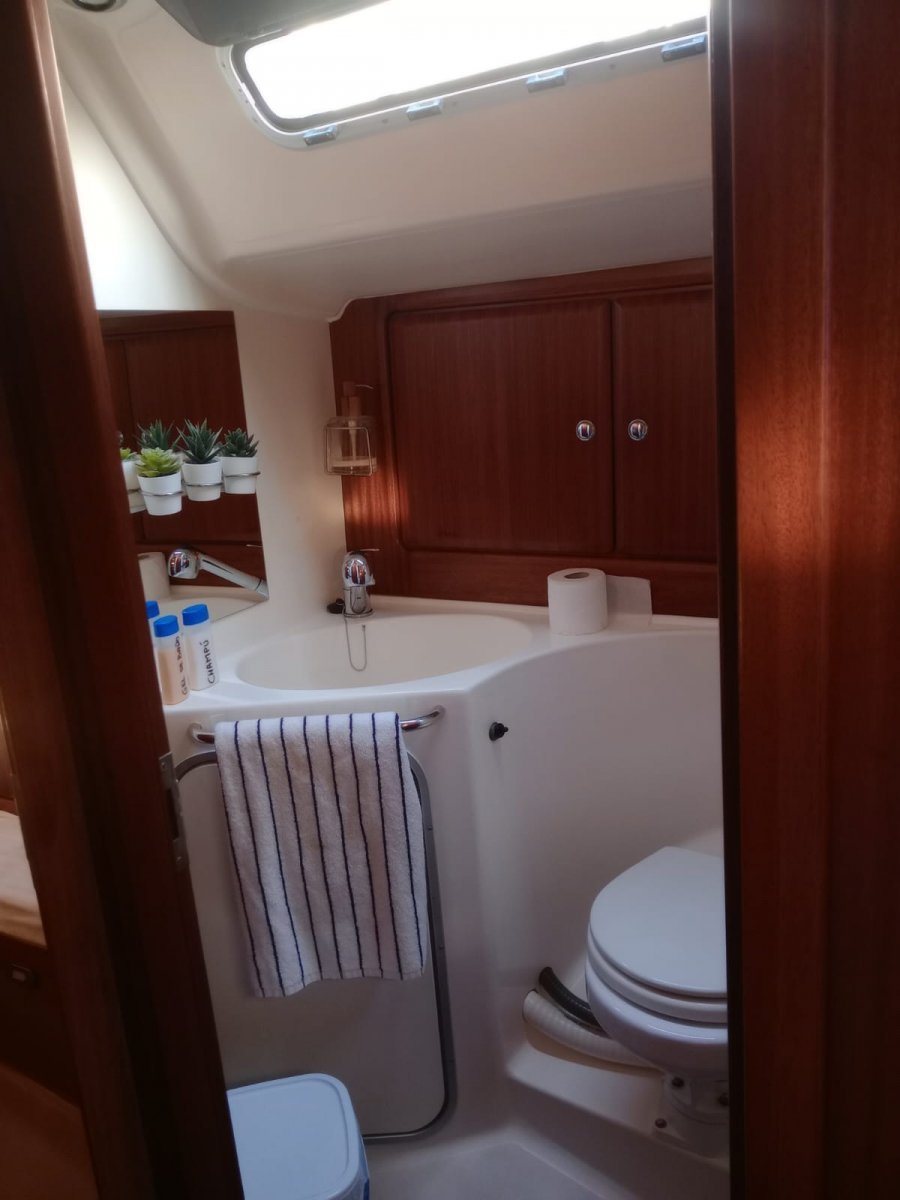 Bavaria 50 cruiser del 2000 de construccion fuerte y robusto, tres camarotes con baños privados, cocina con horno, microondas, nevera, menaje, tv 55" barra de sonido, altavoces en bañera, radio con bluetooth o jack, equipado con luz de cortesia en camarotes y bañera, nevera y ducha exterior en bañera, bimini, hamacas, columpio, asiento en proa, auxiliar con fueraborda para desembarque en playa, desaladora, generador. Comodo acceso a bañera desde el agua y amplio acceso al interior del barco, equipado con chaleco salvavida para niños, es el barco perfecto tanto para travesías oceánicas como para pasar un dia de experiencias inolvidables.